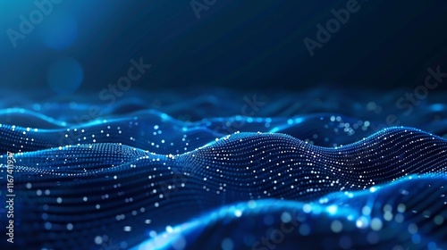 Abstract Blue Digital Waveform: A mesmerizing digital landscape of undulating waves composed of luminous particles, evoking a sense of serenity and technological advancement.