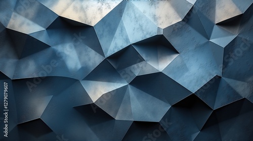 Abstract blue geometric pattern with sharp, angular facets, creating a futuristic, crystalline effect. Modern and striking design.