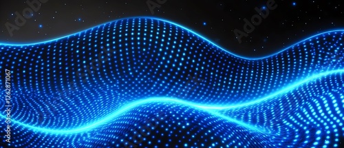 Abstract Blue Glowing Dotted Wave Background Art Dots Dark Light Space