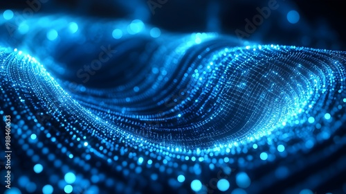 Abstract Blue Glowing Particle Wave Background