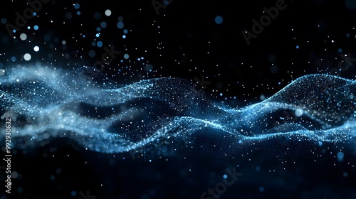 Abstract Blue Glowing Particles Wave on a Black Background