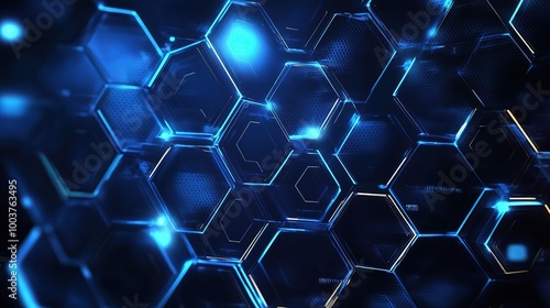 Abstract Blue Hexagon Pattern with Light Effects