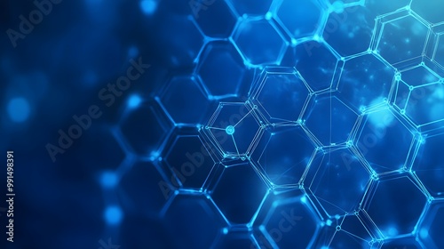 Abstract Blue Hexagonal Structure with Glowing Lines