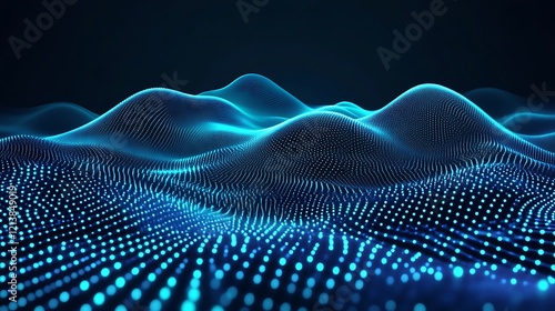Abstract Blue Light Particle Wave Landscape