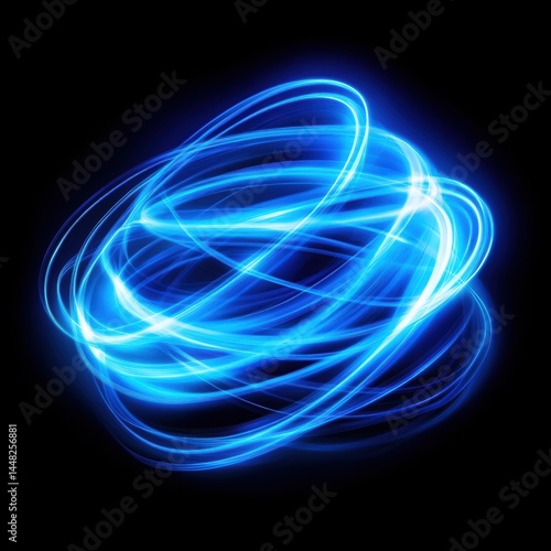 Abstract Blue Light Trails on Black Background for Modern Technology Concepts