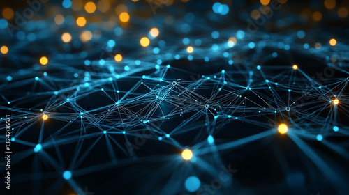 Abstract blue network digital connections technology background web data lines nodes cyber points