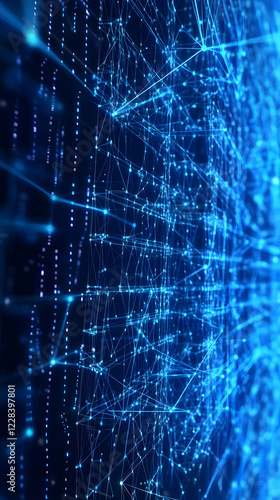 Abstract Blue Network Glowing Grid Background Connects Data Rapidly and Efficiently with Digital Stream