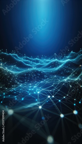 Abstract Blue Network: Glowing Nodes and Lines Forming a Wavy Landscape