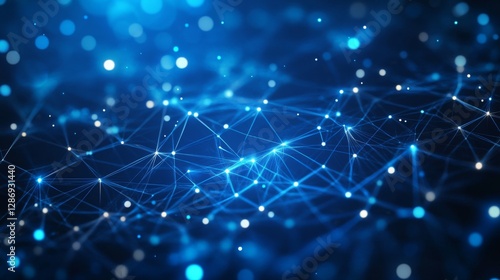 Abstract blue network with glowing lines and dots on dark background