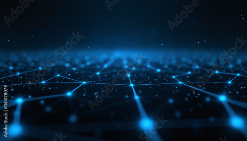 Abstract Blue Network with Illuminated Data Points: An abstract blue network featuring illuminated data points, representing digital communication and interconnected technology.