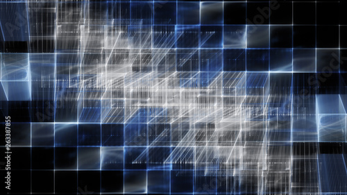 Abstract blue on black background element. Fractal graphics 3d illustration. Science or technology concept.