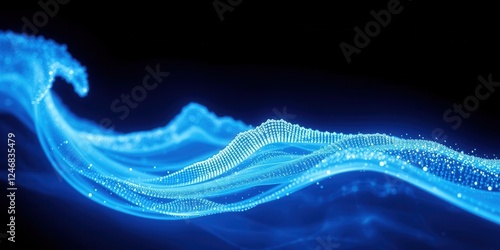 Abstract Blue Particle Wave Flowing Across Dark Background