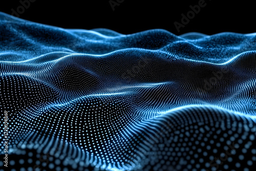 Abstract Blue Particle Wave Flows Smoothly on a Dark Background.