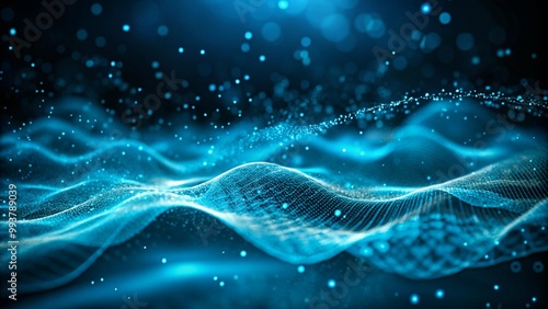 Abstract blue tech background with digital waves background. network systems with artificial neural connections, and cyber quantum computing. Abstract wavy halftone dots background