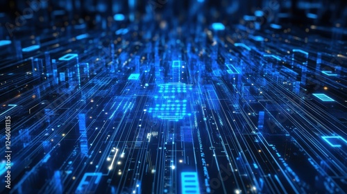 Abstract blue tech background with digital waves cyber quantum computing and electronic global intelligence