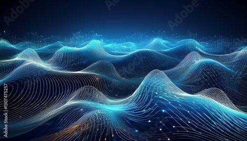 abstract blue tech background with digital waves dynamic network system artificial neural connections cyber quantum computing and electronic global intelligence