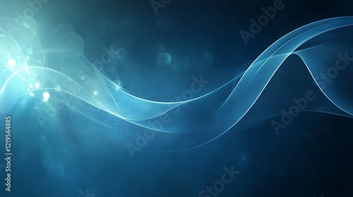 Abstract Blue Wave Background With Glowing Particles