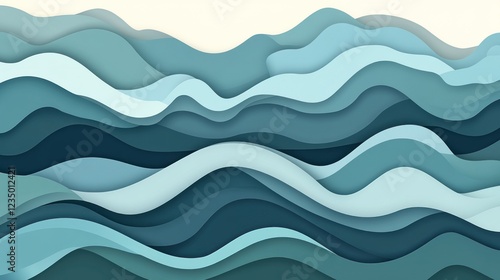 Abstract blue wave paper cut background.