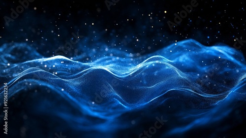 Abstract Blue Wave with Glowing Particles