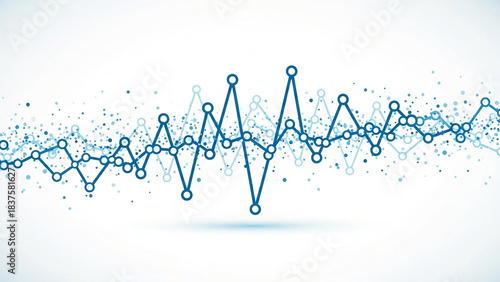Abstract blue waveform graph with data points representing financial analytics or sound waves isolated on white background