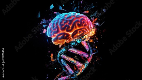 Abstract Brain DNA Fusion Shattered Glass, Genetic Code, Neural Network