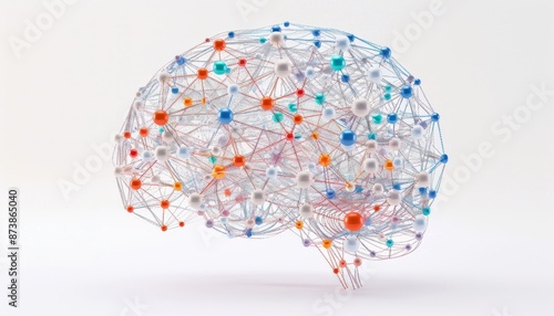 Abstract Brain with Colored Spheres and Network Connections