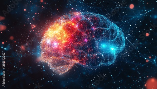 Abstract brain with colorful neural connections, illuminated with bright, vibrant colors, symbolizing the power of creativity and intelligence in a digital world