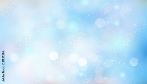 Abstract bright colorful blur bokeh background with blue white pastel circles. Beautiful texture.