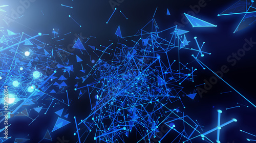 Abstract bright glitter blue background. Network connection structure. Big data digital background. 3d rendering..