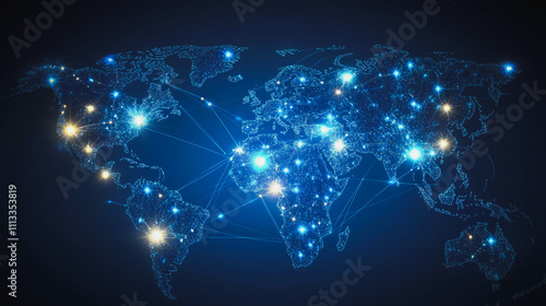 abstract business connection of line from nail node to node on world map background Innovation network points Earth's surface