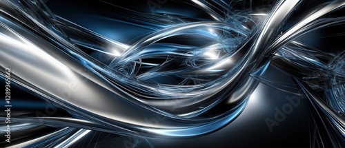 Abstract Chrome and Blue Metallic Flowing Lines - Modern Technology Background.