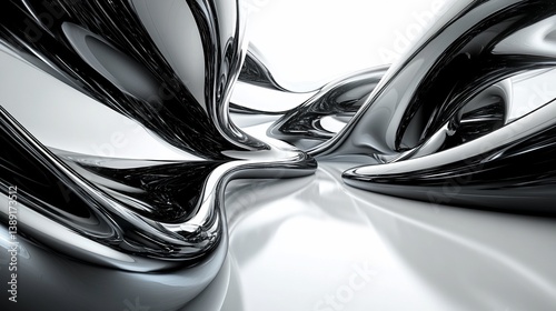 Abstract chrome structure with fluid forms and reflections for modern design