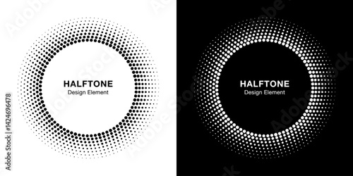 Abstract Circle Frame Halftone Dots Logo Emblem Design Element. Round Border Icon Gradient Halftone Circle Dots Pattern Texture.