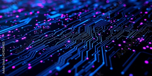 Abstract Circuit Board Background with Glowing Lines and Dots