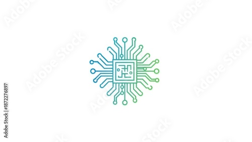 Abstract Circuit Board Chip Microprocessor Symbol Green Blue Gradient Lines White Background Technology