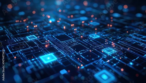 Abstract circuit board, glowing with intricate network of components