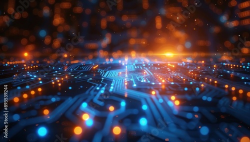 Abstract Circuit Board with Glowing Lights