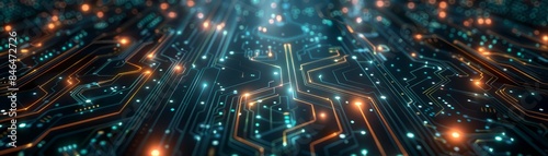 Abstract Circuit Board with Glowing Lines.