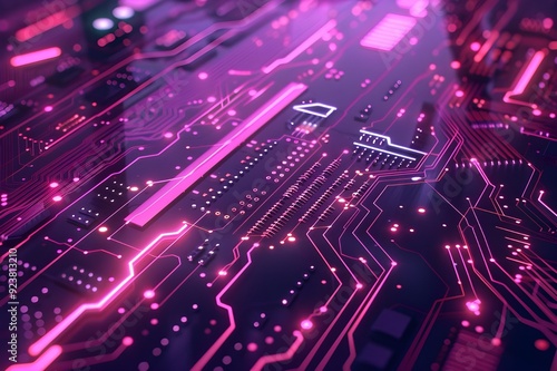 Abstract Circuit Board with Neon Lights