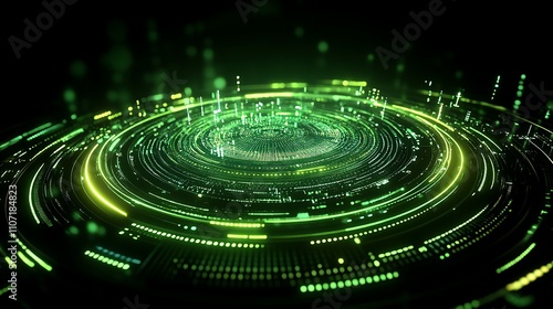 Abstract Circular Light Patterns in Green and Yellow Colors Representing Technology and Digital Future