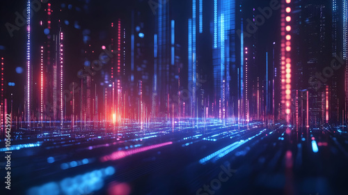 Abstract Cityscape - Neon Lights and Digital Structures