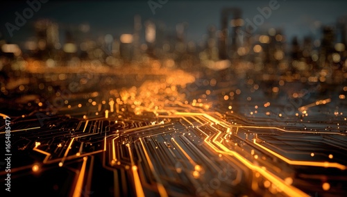 Abstract cityscape circuit board