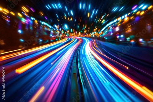 Abstract Cityscape with Blurred Lights and Speed Lines