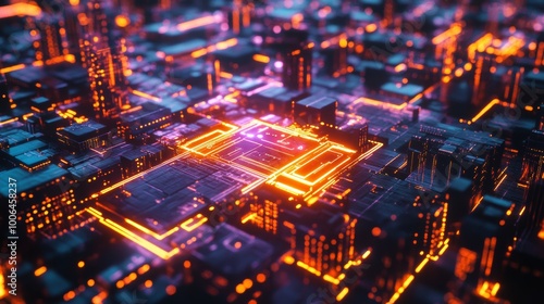 Abstract Cityscape with Glowing Lines.