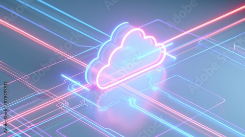 Abstract cloud computing concept with neon lights and digital connections. Ideal for technology and networking themes.