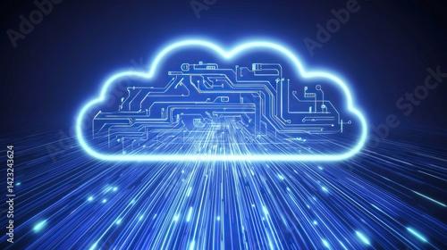 Abstract cloud computing network digital data technology illustration web blue fast wire lines board