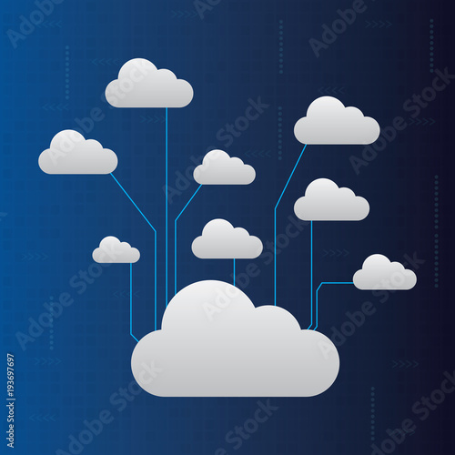 Abstract cloud network connection. Cyber technology concept. Cloud networking background.