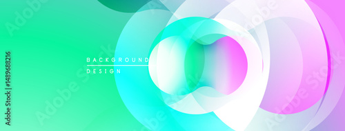 Abstract colorful background. Overlapping circles create dynamic visual effect. Gradient transitions, modern design elements present.
