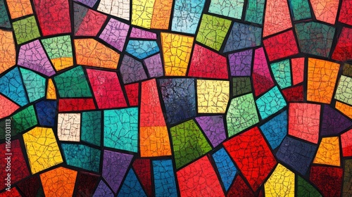 Abstract colorful mosaic pattern with cracked texture.