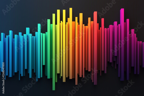 Abstract Colorful Rainbow Bar Graph Data Visualization 3D Render